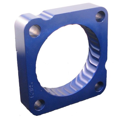The Powr-Flo spacers bore is designed to increase the velocity of the air flow into the intake manifold. By delivering the air with more velocity it allows more air into the combustion chamber for a denser air charge. The design results in improved throttle response and impressive power gains in the mid range and top end. In addition, the increased air flow results in improved overall fuel efficiency. Simple, bolt-on installation with no other vehicle modifications required. Compatible with other aftermarket upgrades such as computer upgrades, cold air intakes, free flow exhaust systems, etc. Precision machined out of billet aluminum by JET’s in house CNC machine shop.